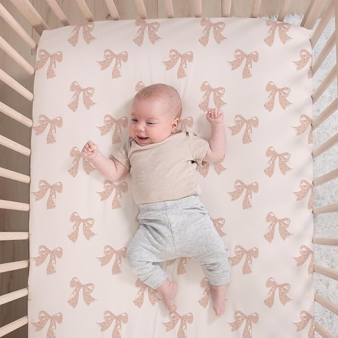 - Universal Fit: The fitted cotton crib sheet is designed for standard crib mattresses (28" x 52") with all-around elastic, ensuring a secure and snug fit for comfortable sleep. Dust ruffle is layered luxury with 4-sides and generound 16" drop length