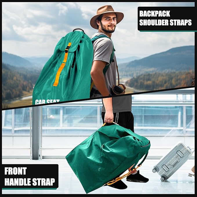 - ❤ EASY TO CARRY: Equipped with adjustable comfortable padded shoulder straps, our travel car seat bag can easily be carried like a large backpack. The car seat travel bag also has handles in front and top if you don’t want to carry it on your shoulder. When not in use, it can be easily folded and kept in the storage pouch, without taking up much space.