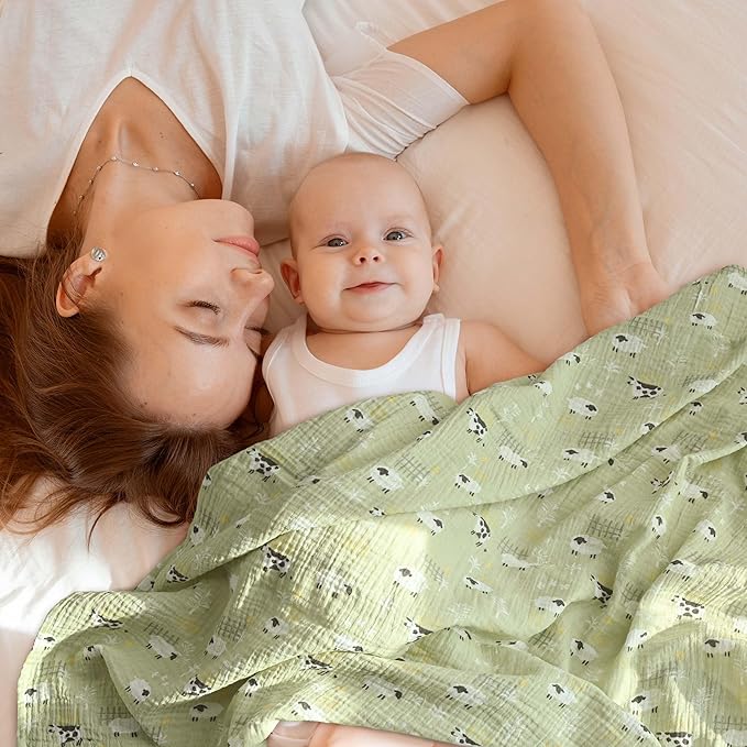 - MULTI-FUNCTIONAL USES: Baby muslin swaddle blanket can be used in many different ways, support infants and parents as a tummy time blankie, nursing cover up, changing table or stroller cover. The swaddling blanket can be used all around the home or going out as they come in super handy when bathing, feeding, burping, swaddling or cleaning baby. Reusable and very soft, breathable and absorbent.