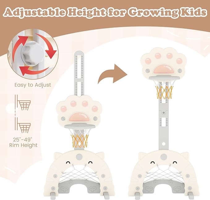 - Grow with Your Kids: The rim height of this kids basketball hoop stand is adjustable between 25"-49"/64-125cm, allowing it to evolve with your child's growth and varying skill levels. And the height is easy to adjust through the knob.