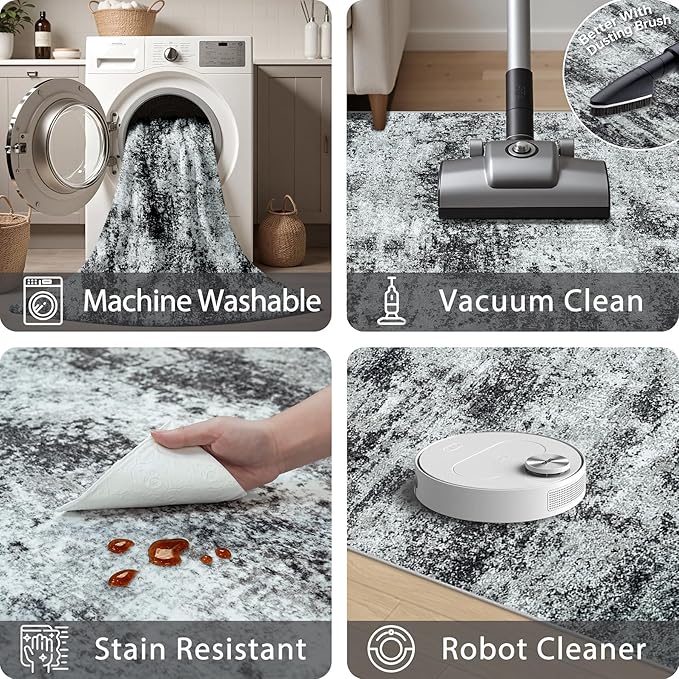 Area Rugs 8x10 Living Room Rugs: Modern Abstract Washable Rug with Non-Slip Backing, Stain Resistant Indoor Floor Large Carpet for Bedroom Dining Room Table Nursery Hallway Home Office Dark Black/Gray
