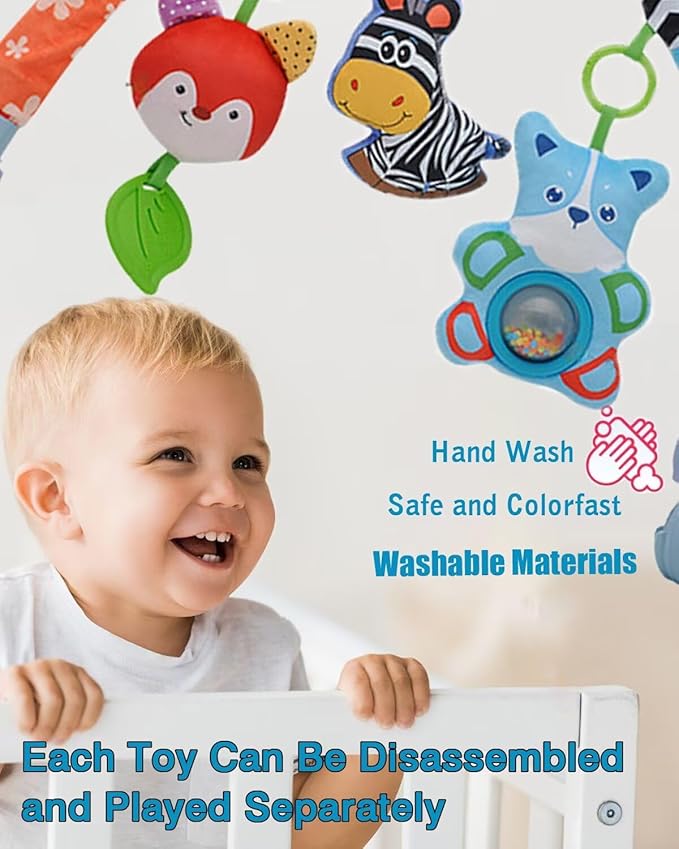 - Car seat toys,It is an early development toy.crib toys hanging made of washable materials.Each stroller toy can be detachable dsassembled and played separately.