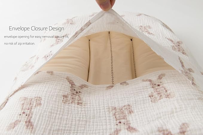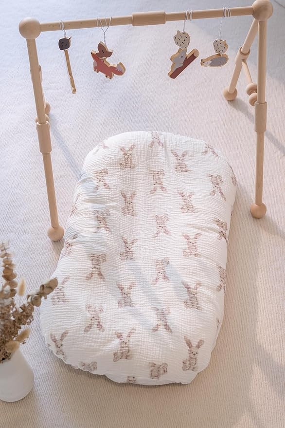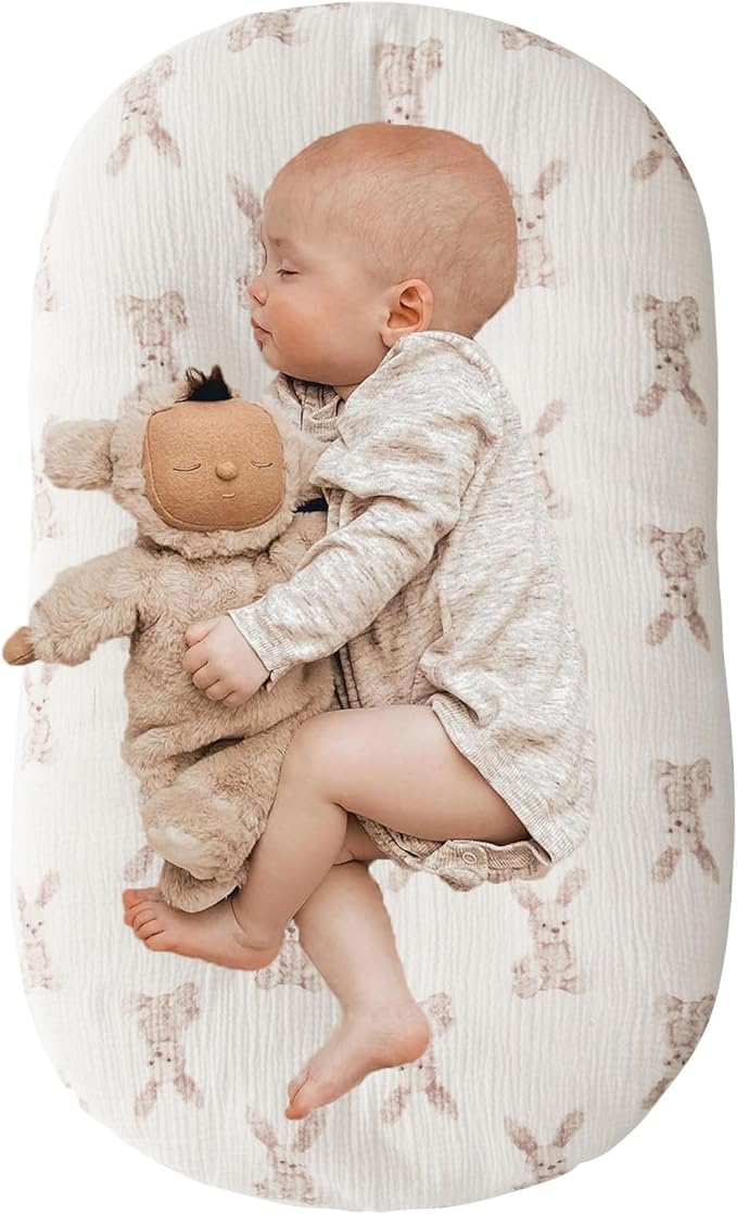 Little Jump Cotton Muslin Baby Lounger Covers, 2 Pack, Soft Removable Slipcovers for Newborn Infant Lounger, for Girls Boys (Bunny)