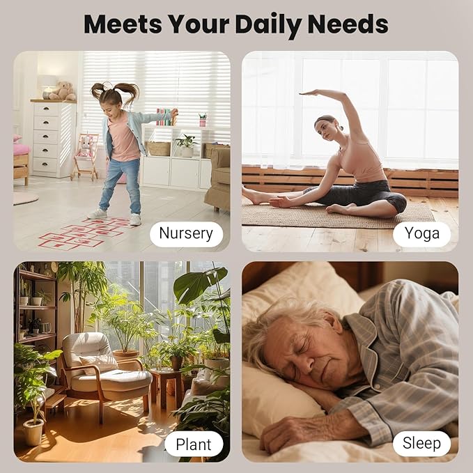 - 7-πͺππππ π³πππππ & πΊππππ π΄ππ π & 24π― π»ππππ: The humidifier large room runs quietly at just 35dB. Features 7-color mood lighting to enhance your space. Sleep Mode turns off all lights for undisturbed rest. Set the 24-hour timer and Interval mode for personalized, energy-saving and hassle-free humidification
