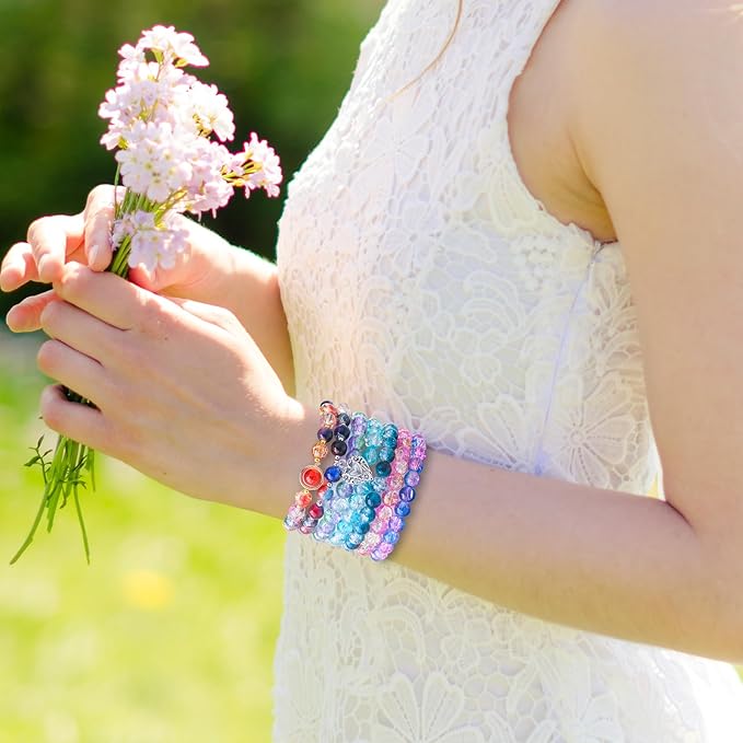 - Wide Application: These vibrant crackle glass beads are not only ideal for making bracelets but also suitable for creating other craft gifts such as necklaces, earrings, and ankle bracelets. Whether you’re a jewelry making beginner or a handcraft lover trying new things,the rich accessories in this glass bead set will make your personalized creation journey joyful and let you fully enjoy hands-on fun