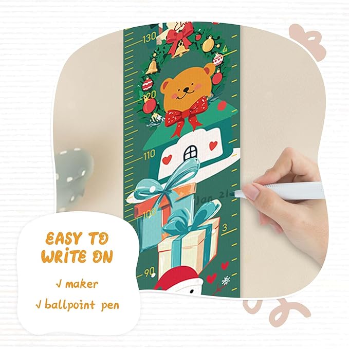 - Design: Kids growth chart with rope at the top of the chart, easy to install and removeable, foldable and portable design, easy to store, hang, roll up, transport, and save space. It boasts a material that's easy to write on, where you can use dark colored ballpoint pens and markers to track growth milestones. Our height ruler can clearly show your kids' height.