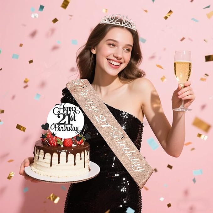 - 21st Rhinestone Crown & Sparkly Sash: The birthday sash, made of soft fabric via hot-press stamping glitter technique, features superior quality with non-shedding glitter and rose gold It's my 21st Birthday letters. The crown, crafted from sturdy hard alloy with dazzling rhinestones, is meticulously designed for 21st birthday parties.