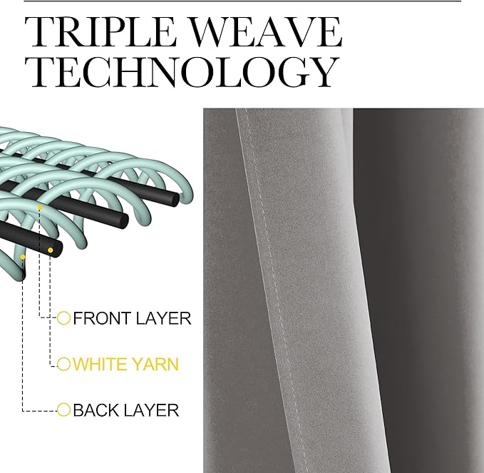 - Premium Material: Satin silk-like fabric, ultra-soft and quite substantial feel with a luxurious touch. 85%-99% light blocking, thermal insulated, soundproof, and energy-efficient. Wrinkle-free, neat threads, same color on both sides.