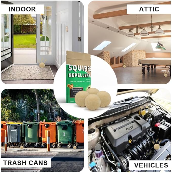- Ready to Use: Simply place or hang the squirrel repellent in areas prone to squirrel activity.