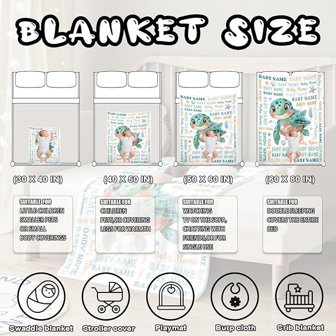 - Custom Baby Gifts Your Family Will Cherish -- Imagine the delight when parents unwrap this personalized baby blanket with name printed just for their little one. Ideal for newborns, toddlers, or kids, this blanket becomes a sentimental heirloom they’ll treasure. Click “Customize Now” and easily enter the name to create a unique custom baby blanket - the ultimate baby shower gift or birthday gift for baby girls or boys.