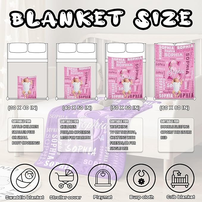- Idea Gift -- Perfect for every special someone – newborns, toddlers, kids, teens, teen girls and beyond. Whether celebrating baby showers, birthdays, Christmas, weddings, anniversaries, Valentine’s Day, Mother’s Day, Father’s Day, or graduations, our custom blankets make meaningful keepsakes that grow with them. Simply add a name to create an unforgettable gift that speaks straight from the heart – the sweetest way to show how much you care.