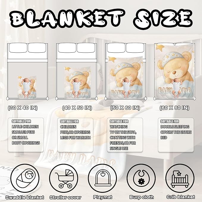 - Custom Baby Gifts Your Family Will Cherish -- Imagine the delight when parents unwrap this personalized baby blanket with name printed just for their little one. Ideal for newborns, toddlers, or kids, this blanket becomes a sentimental heirloom they’ll treasure. Click “Customize Now” and easily enter the name to create a unique custom baby blanket - the ultimate baby shower gift or birthday gift for baby girls or boys.