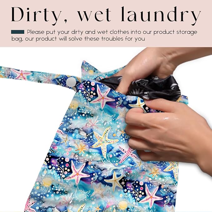 - ๐ MULTI-FUNCTIONAL โ Our wet bags have lots of uses. They are suit for carrying wet swimsuit bag diapers, wet swimsuits and sanitary napkin, menstrual pad; not just for wet stuff - these bags make excellent organizers for toys, cosmetics, accessories, toiletries, electronics, travel and more. With a snap handle, snap your bag wherever you need it - changing๏ผsuitcase, table or tote bag.
