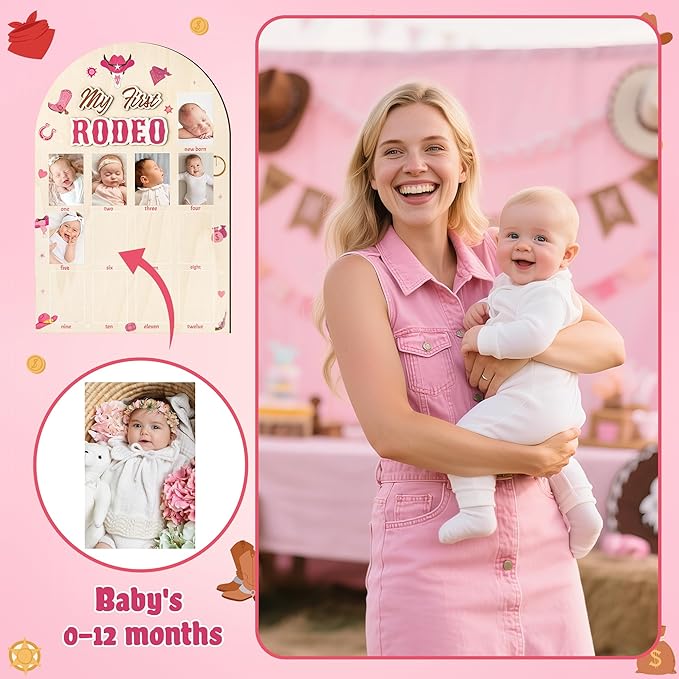 - Western Cowgirl Display Wood Board: Our 1st Birthday Frame comes with hanging hooks and adhesive points, making it easy for you to mount and decorate. Crafted from durable, premium wood, it's designed for longevity. Adorned with your baby's photo, this western cowgirl-themed frame will undoubtedly become a stunning focal point at your child's first birthday celebration.