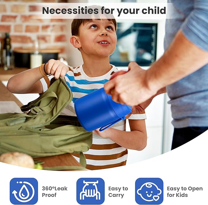 - Leak-Proof Design: Featuring an upgraded double-layer silicone seal that provides a 360° leak-proof guarantee. Rest assured that our leak-proof thermo food jar can fit in your lunch bag without worrying about spills. The insulated thermal food jar comes with a stainless steel spoon for your child's convenience.