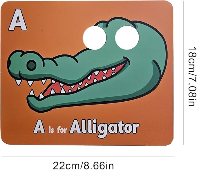 - [Learn Through Play]- Each animal mask alphabet cards is specially punched, and children can play by aligning their eyes with the round holes and transforming into 26 fun cartoon characters. In playing, children can interact with their partners and achieve immersive learning.