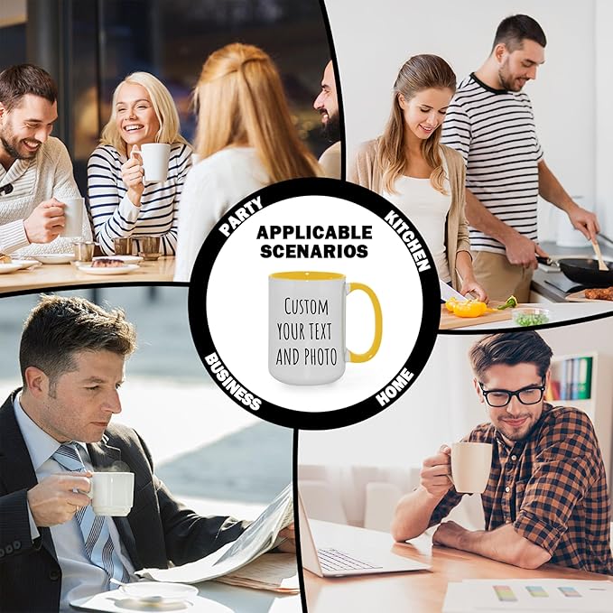 Custom Mug Upload Your Picture Personalized Coffee Mug with Photo Text Name Customized Cup Unique Ideas Gifts for Men Women Mom Dad Girlfriend Boyfriend Friend Family (Yellow, 15oz)