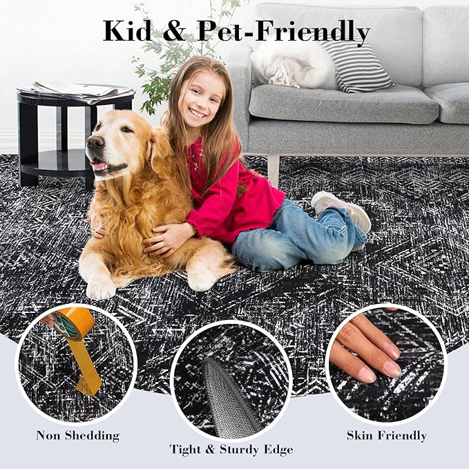 - [Secure Non-Slip Backing]: Equipped with a TPR non-slip backing, this area rug stays securely in place on any surface, reducing slips and making it especially safe for families with kids and pets