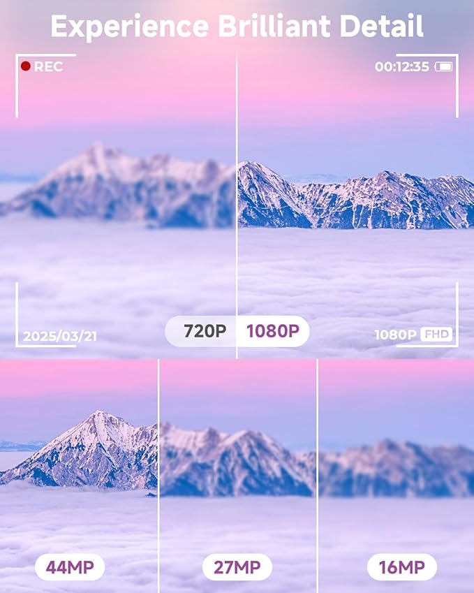 - 【44MP Photo & 1080P FHD Video】:This compact digital camera is equipped with Upgrade CMOS technology ensures precise detail. Mini camera support 44MP photos and 1080P UHD video recording and features a 2.4inch Ultra HD display. It comes with a 32GB memory card to record fun and memorable moments at any time.