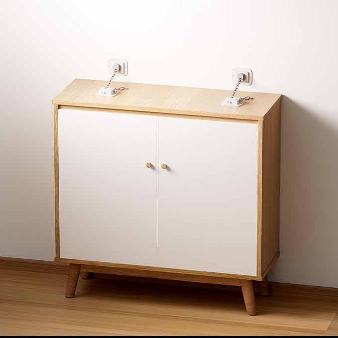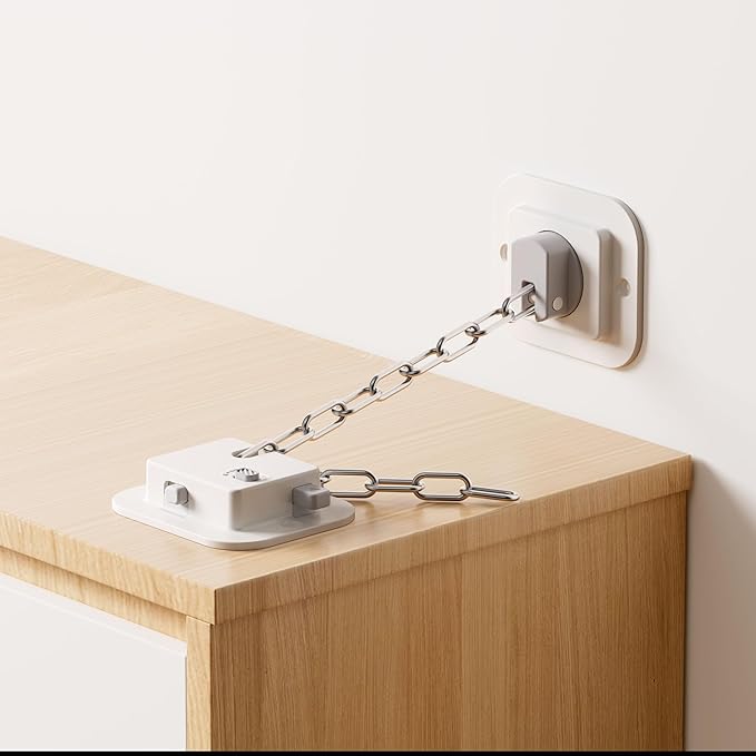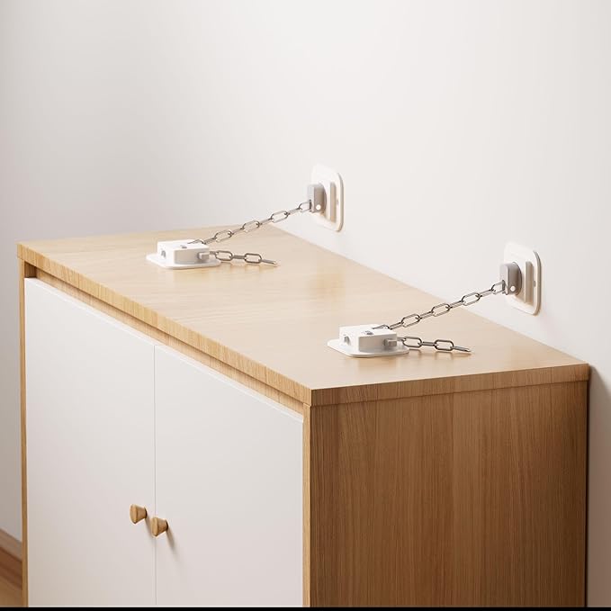- COMPLETE KIT: Includes all necessary components - adhesive mounting plates, metal chains, and installation hardware for multiple furniture pieces