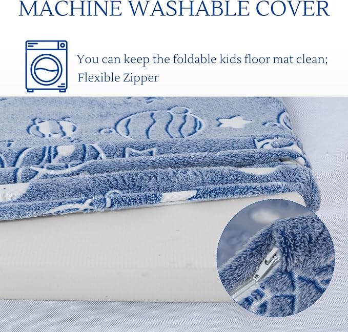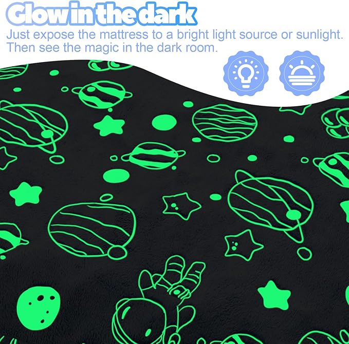 - Glow in the Dark: The glowing patterns on the foldable play mat help stimulate children's senses and promote cognitive development. Padded kid's floor futon mat glows in the dark, so the child futon is handy for use at night