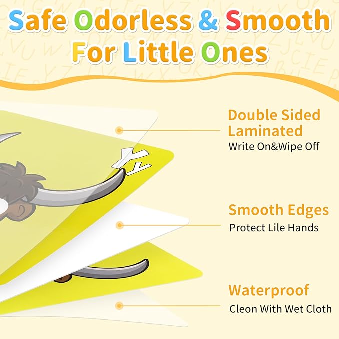 - 【Child-Safe Learning Tool】Features rounded corners, laminated, wipe-clean with smooth edges. The colorful alphabet flash mask card set is waterproof and safely designed for repeated classroom or home use.