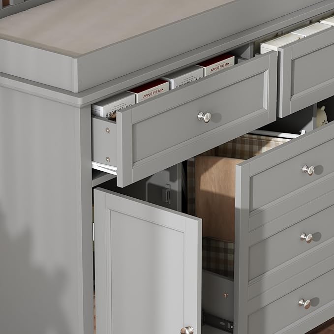 - Various-scene Use - ROMESHINE grey nursery dresser adopts a simly clean design, can perfectly match different home schemes and tones. This integrated storage cabinet has added more practical storage solutions, including a sliding laundry hamper, it allows you to get rid of dirty clothes faster when changing your baby's clothes, or make diaper access easier.