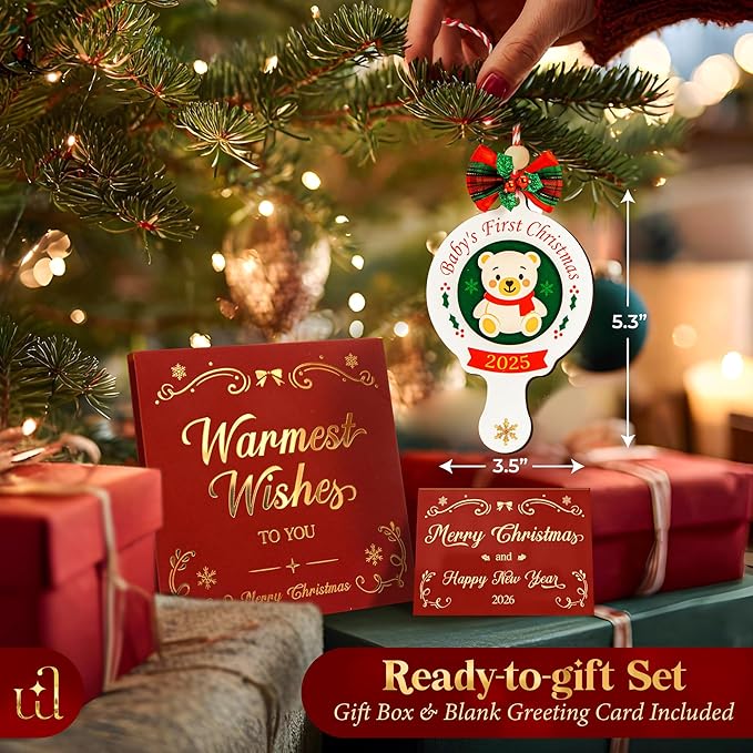 - Set Include: Each set comes with one ornament baby first christmas and a blank card for your own message. Perfect as a baby girl first ornament, babys 1st christmas ornament 2025, or new baby ornament 2025 to hang on your baby first christmas tree.