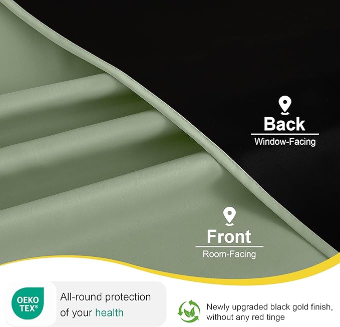 - 100% BLACKOUT: These curtains are manufactured in a STANDARD 100 certified by the OEKO TEX factory. The curtains can block out 100% bright sunlight and UV ray, bring you a full room darkening environment for good night sleep, afternoon nap and weekend lie-ins.