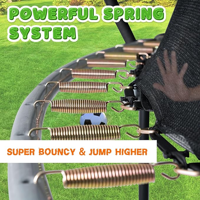 - 【Easy to Install】Easy assembly, joyous start right away! The package includes all necessary accessories for trampoline installation, and the installation guide is easy to read and understand, you can swiftly and easily assemble the trampoline. Our design team fully considered the convenience of trampoline installation during the design process so that your child can indulge in the joy of bouncing without any significant waiting time.
