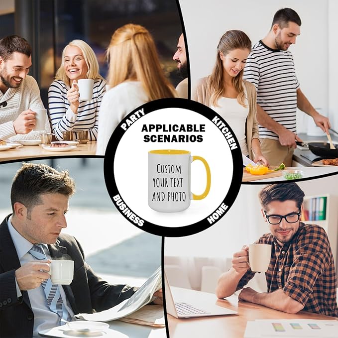 Ship Next Day Custom Mug Design Your Own Photo Text Personalized Picture Gifts for Women Men Customized Gifts Idea Personalized Coffee Mugs 15oz Yellow Handle