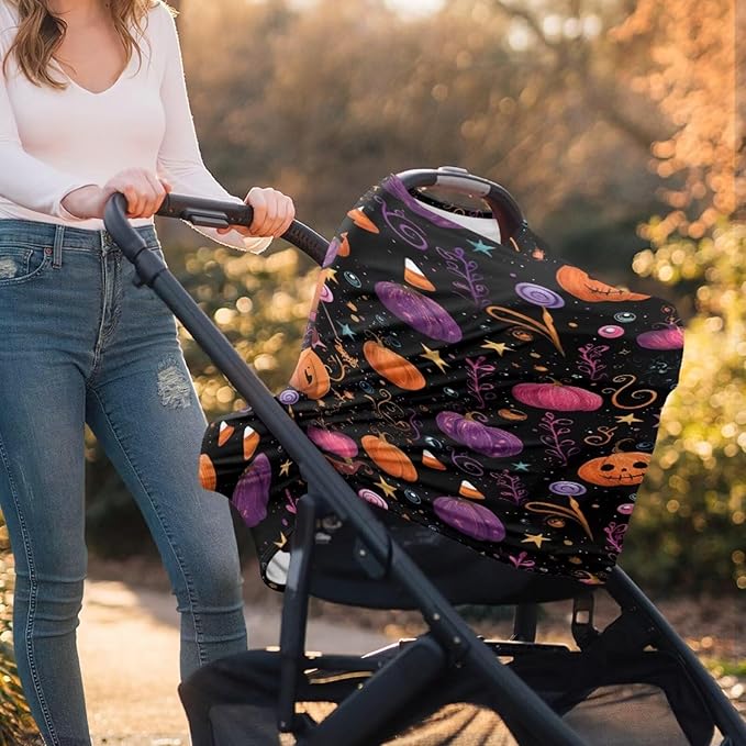 Binienty Infant Carseat Canopy, Cute Halloween Pumpkin Nursing Cover Soft Breathable Baby Car Seat Covers, Gifts for Mom Lover Wife
